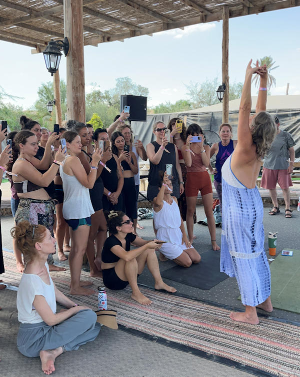 בסוף כל סדנה אני מסכמת את התרגילים ומאפשרת לצלם את הסיכום, אז תמיד יש מעגל כזה מצחיק של המון סלולרים מופנים אלי. תענוג לתת.